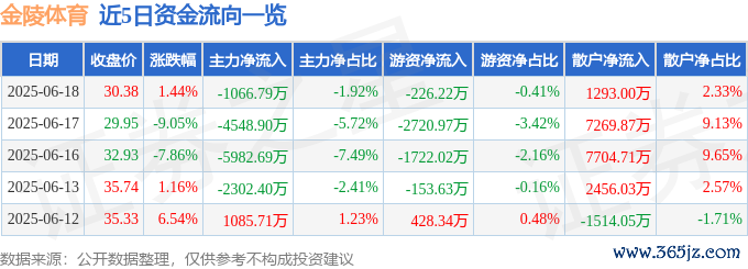本站消息中国星配资,截至2025年6月18日收盘,金陵体育(300651)报收于30.38元,上涨1.44%,换手率24.92%,成交量18.68万手,成交额5.56亿元。