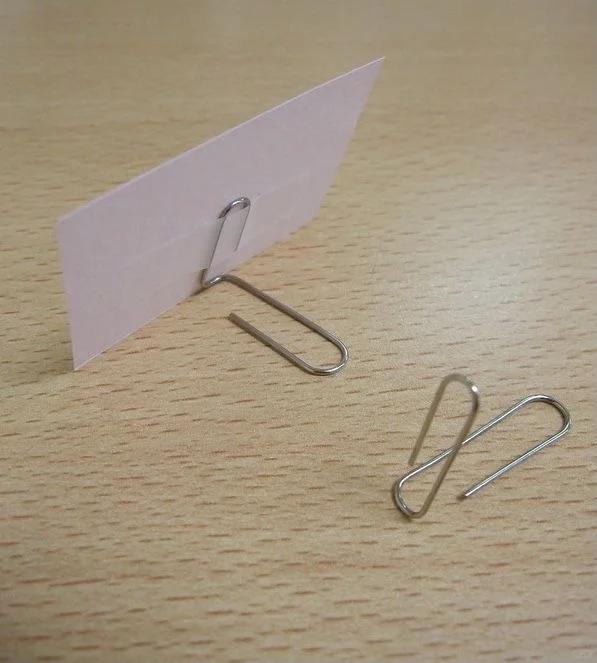想把拍立得照片、明信片摆在桌面,又没买照片架?取一枚回形针,将中间部分弯折成 “V” 形,调整角度让它能稳稳立在桌面上,然后把照片放在回形针的 “支架” 上,用少量胶带轻轻固定。一个小巧可爱的迷你照片架就做好了,摆一排在书桌前,满是生活气息。