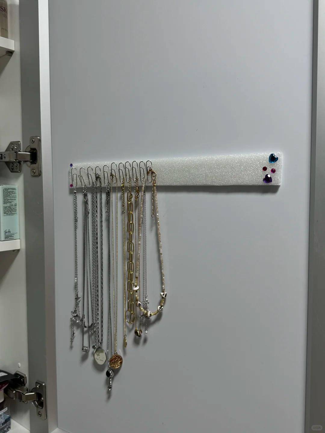 项链、手链随手一放就缠成 “乱麻”,解开费劲又容易扯断?准备一块快递盒里的防滑泡沫纸,用双面胶粘在衣柜柜门内侧,再把回形针弯折成 “L” 形 —— 短边插进泡沫纸固定,长边翘起来做挂钩。把项链、手链分别挂在不同的回形针上,不仅彻底告别缠绕万联证券,还能当 “首饰展示墙”,搭配衣服时一眼就能找到想要的款式。