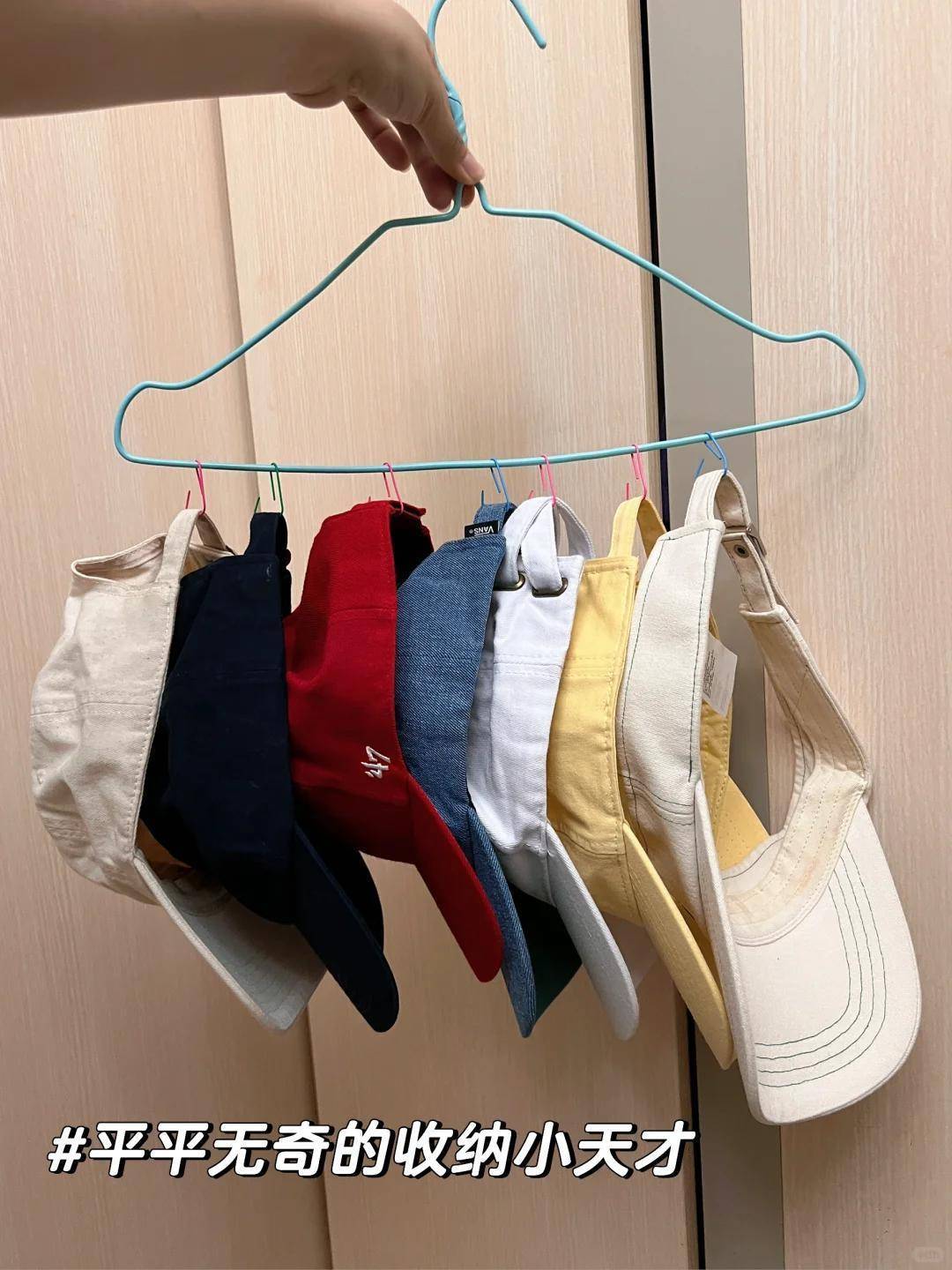帽子多了难存放,叠放易压变形,挂着又占地方?教你一招:把回形针弯折成 “S” 形挂钩,一端挂在普通衣架上,另一端勾住帽子的帽檐或系带。一个衣架能挂 10 多顶帽子,无论是棒球帽、贝雷帽还是针织帽,都能整齐排列,塞进衣柜角落不占地儿,拿取也一目了然。