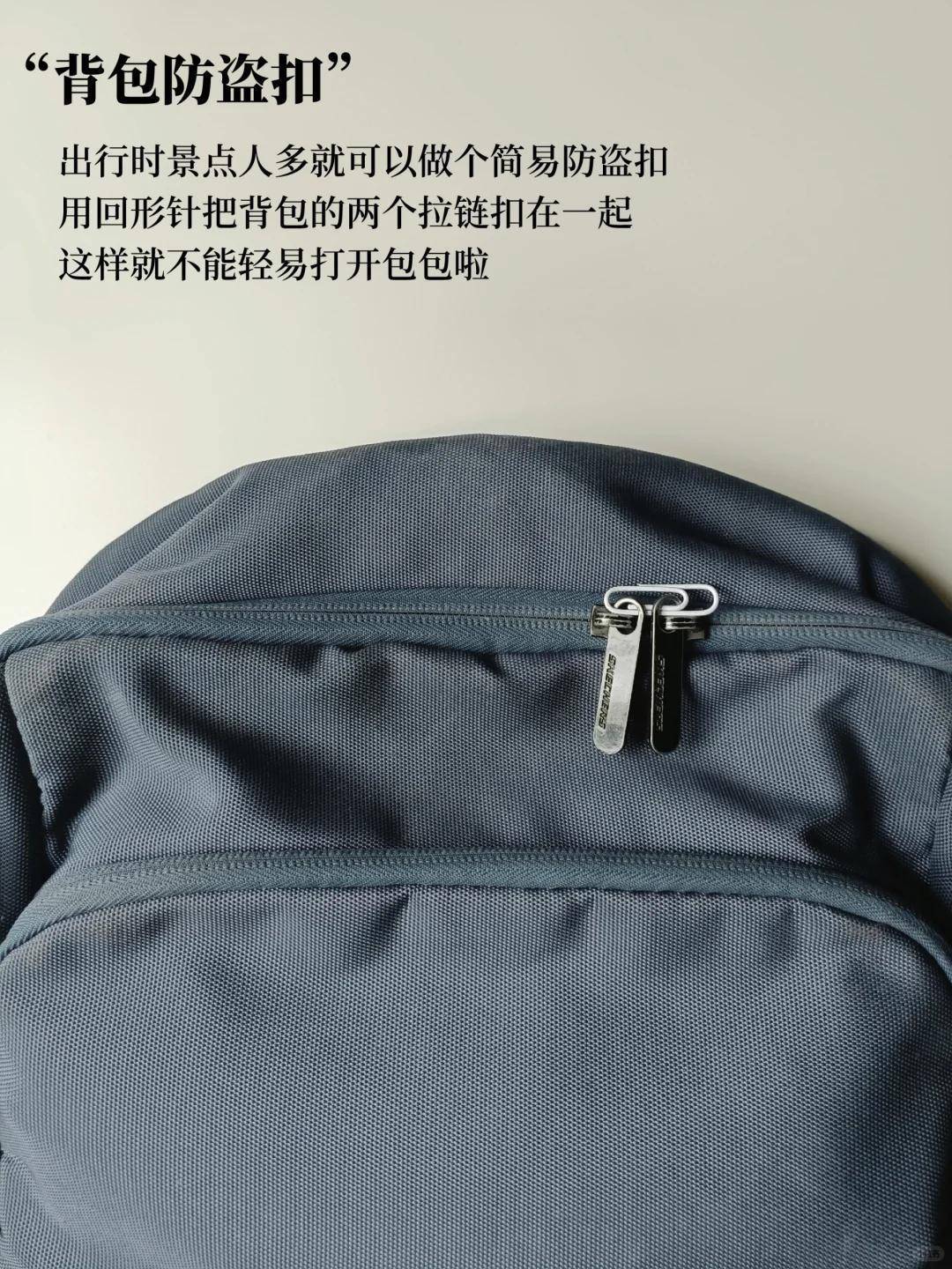 去旅游景点、菜市场等人员密集的地方,双肩包的拉链总让人担心被偷?取一枚回形针,将两端轻轻掰直一点,然后穿过背包两个拉链头的小孔,再把回形针两端弯折固定。这样一来,拉链就无法轻易被拉开,相当于给背包加了一道 “安全锁”,出门更安心。