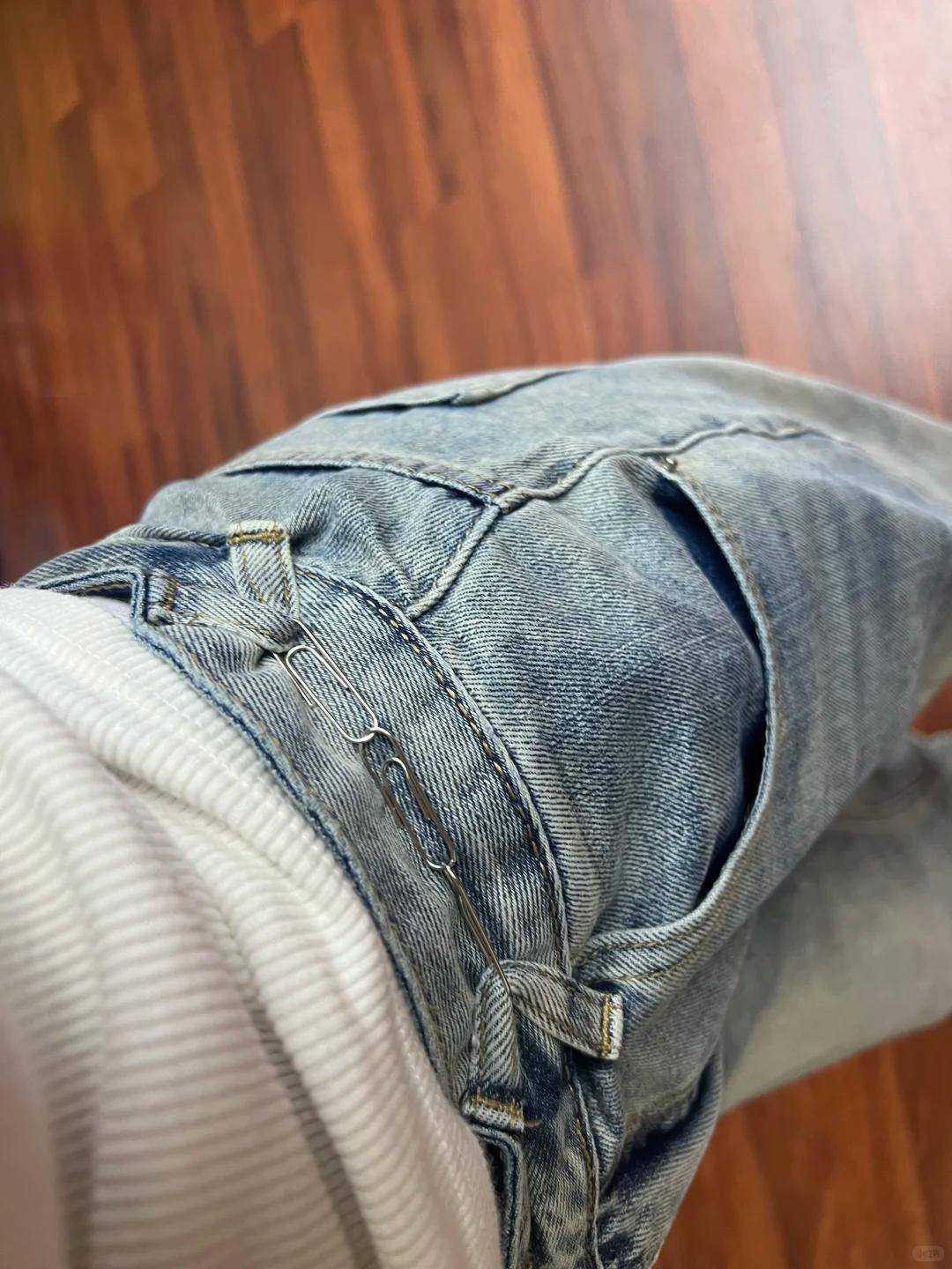 裤子太长踩在脚下,不仅容易脏还可能绊倒人,又懒得缝改?把裤腿向内折到合适长度,然后用 2-3 枚回形针沿着折边轻轻固定,别住布料的内外层即可。回形针小巧隐蔽,从外面基本看不出来,比临时卷裤腿更整齐,出门应急超方便。
