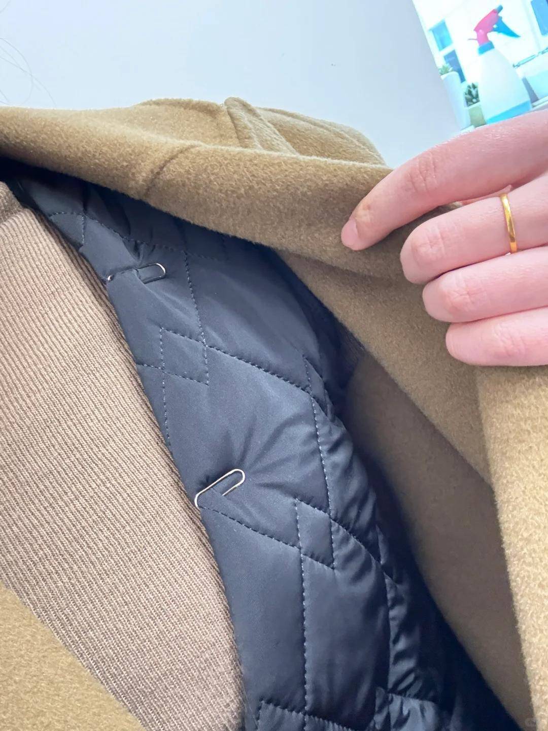 冬天穿毛呢大衣,里面搭羽绒马甲保暖又轻便,但马甲领口总往外翘,显得邋遢又破坏造型?取一枚回形针,将马甲领口内侧与大衣领口内侧轻轻别在一起,注意别让针尖外露。从正面看完全看不出痕迹,既能保住温暖,又能维持穿搭的整洁感,爱美的女士一定要试试。